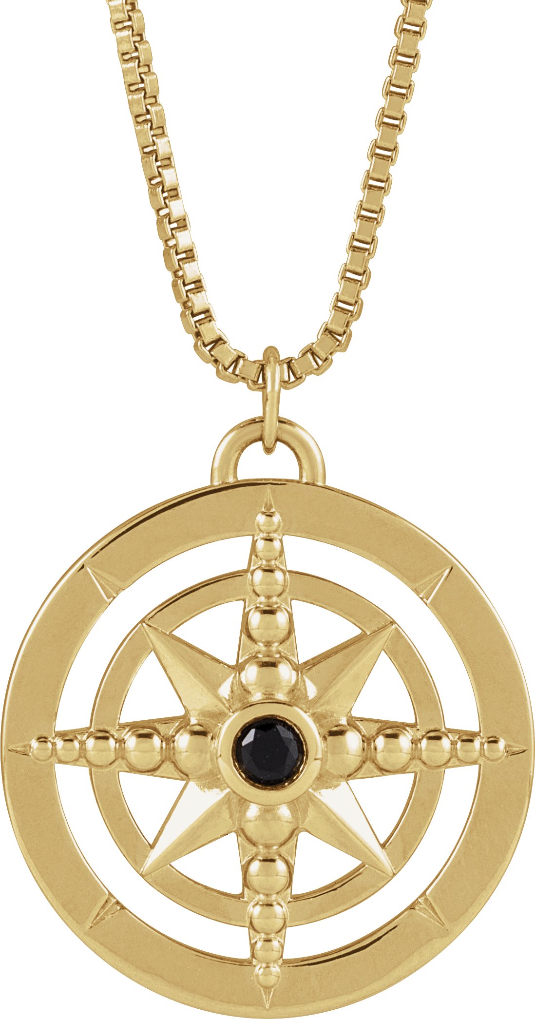 14K Yellow Natural Black Onyx Compass 20" Necklace