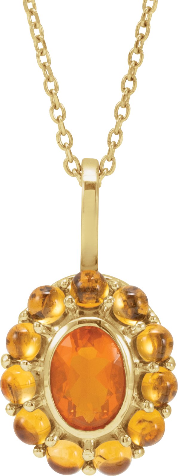 88624 / Necklace / Set / 14K Yellow / Oval / Natural Mexican Fire Opal / 7 X 5 Mm / Natural Citrine / 16-18 In / Polished / Natural Mexican Fire Opal And Natural Citrine Cabochon Halo-Style Necklace