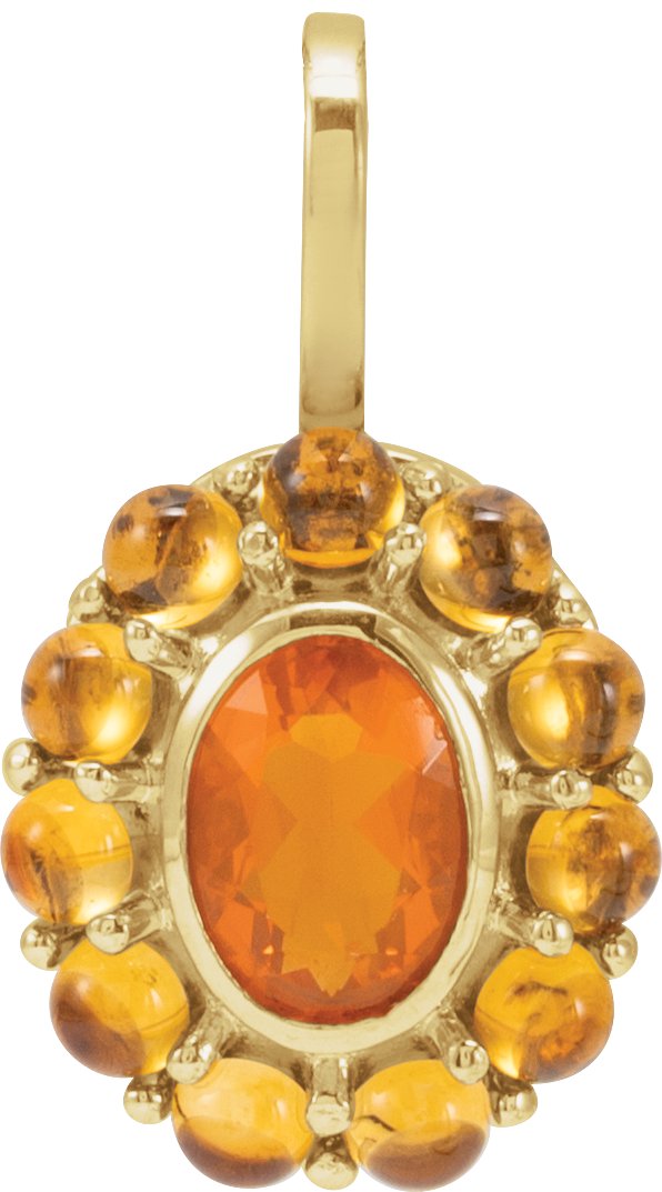 88624 / Pendant / Set / 14K Yellow / Oval / Natural Mexican Fire Opal / 7 X 5 Mm / Natural Citrine / Polished / Natural Mexican Fire Opal And Natural Cabochon Citrine Halo-Style Pendant
