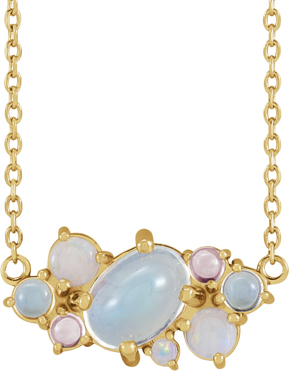 87739 / Necklace / Set / 14K Yellow / Oval / Natural Rainbow Moonstone / 7 X 5 Mm / 16-18 In / Polished / Natural Rainbow Moonstone Scattered Cabochon Necklace