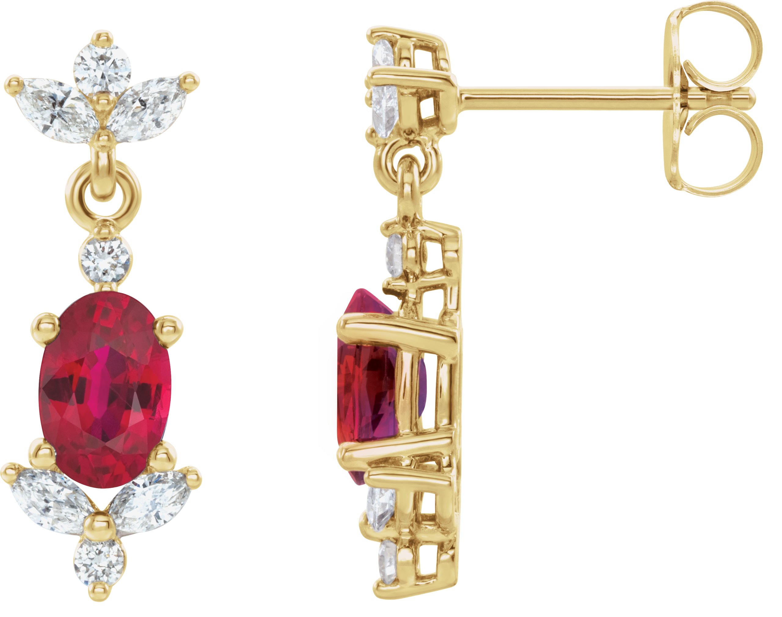 86989 / Set / Natural Ruby / Pair / 17.4 Mm :: 1/3 Ctw / 14K Yellow / I1, G-H / Friction Backs Included / Polished / Natural Ruby And 1/3 Ctw Natural Diamond Earrings