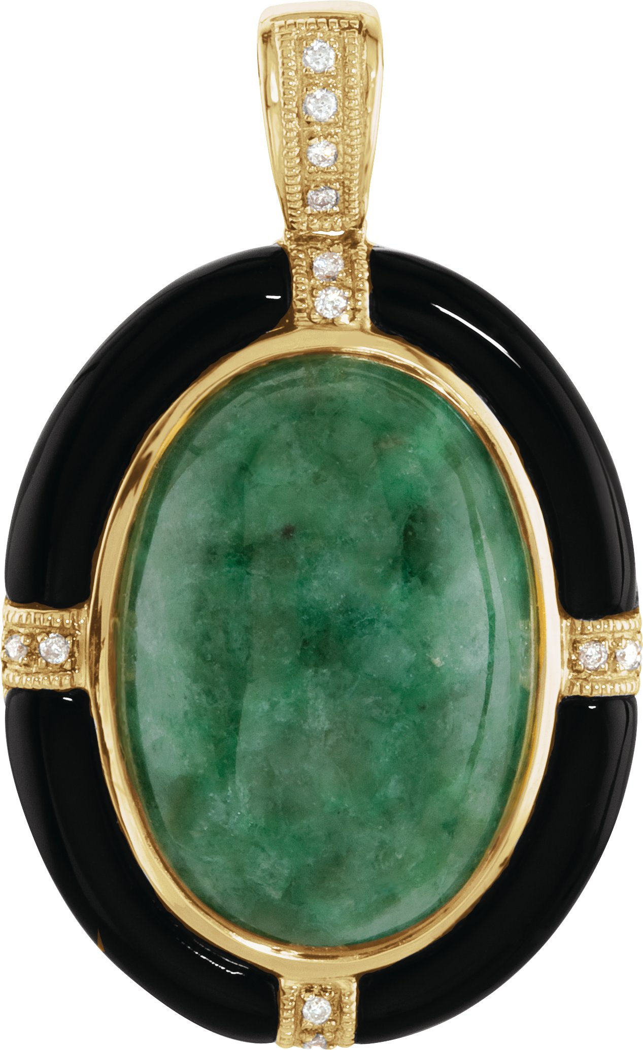 69732 / Pendant / Set / 14K Yellow / Oval / Natural Jade / 20 X 14Mm :: 0.05 Ctw / Natural Black Onyx / I1, G-H / Polished / Natural Russian Jadite Natural Onyx And .05 Ctw Natural Diamond Pendant