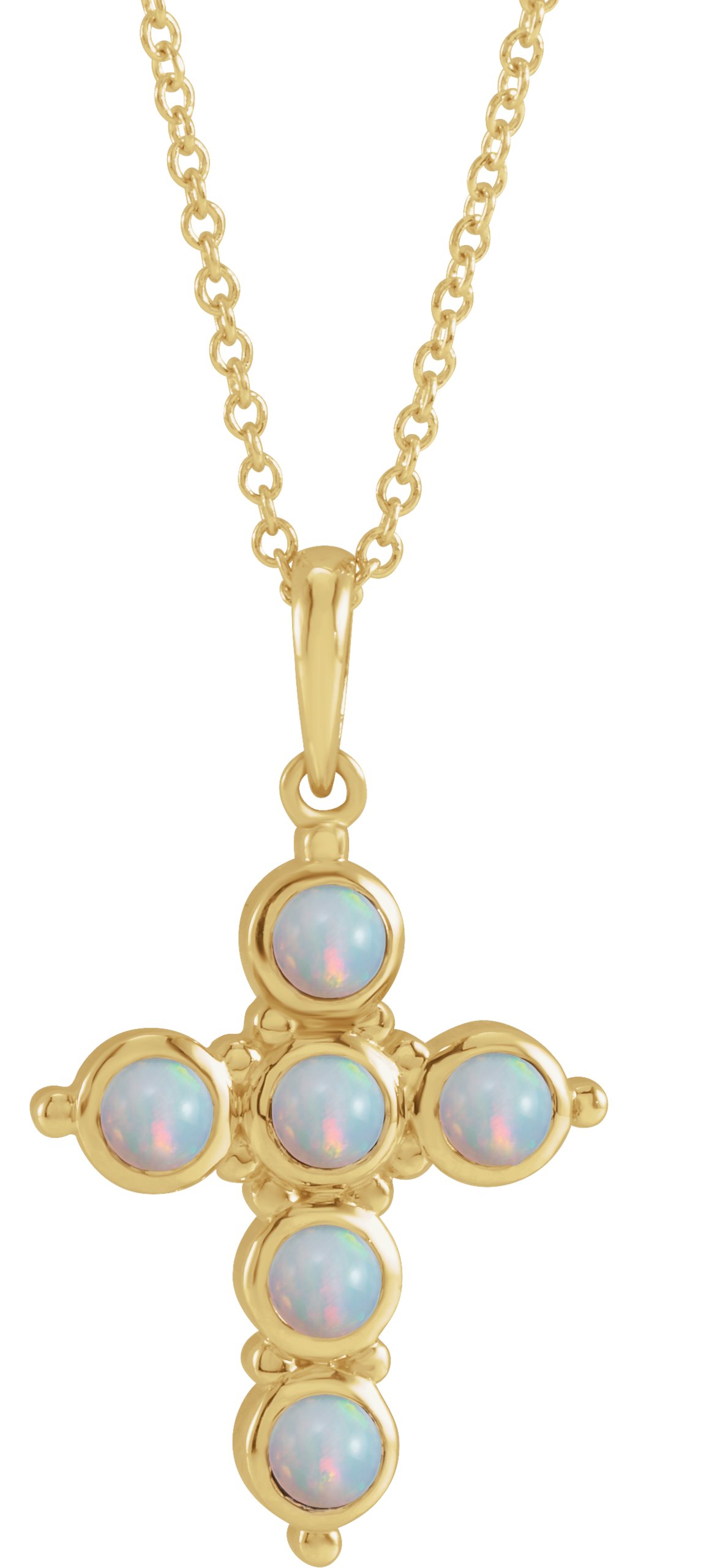R42394 / Necklace / Set / 14K Yellow / Round / Natural White Opal / 3 Mm / 16-18 In / Polished / Natural White Ethiopian Opal Cabochon Cross Necklace