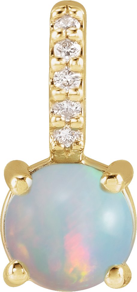 88499 / Pendant / Set / 14K Yellow / Round / Natural White Opal / 5Mm :: 0.02 Ctw / Natural Diamond / I1, G-H / Polished / Natural White Opal And .02 Ctw Natural Diamond Cabochon Pendant