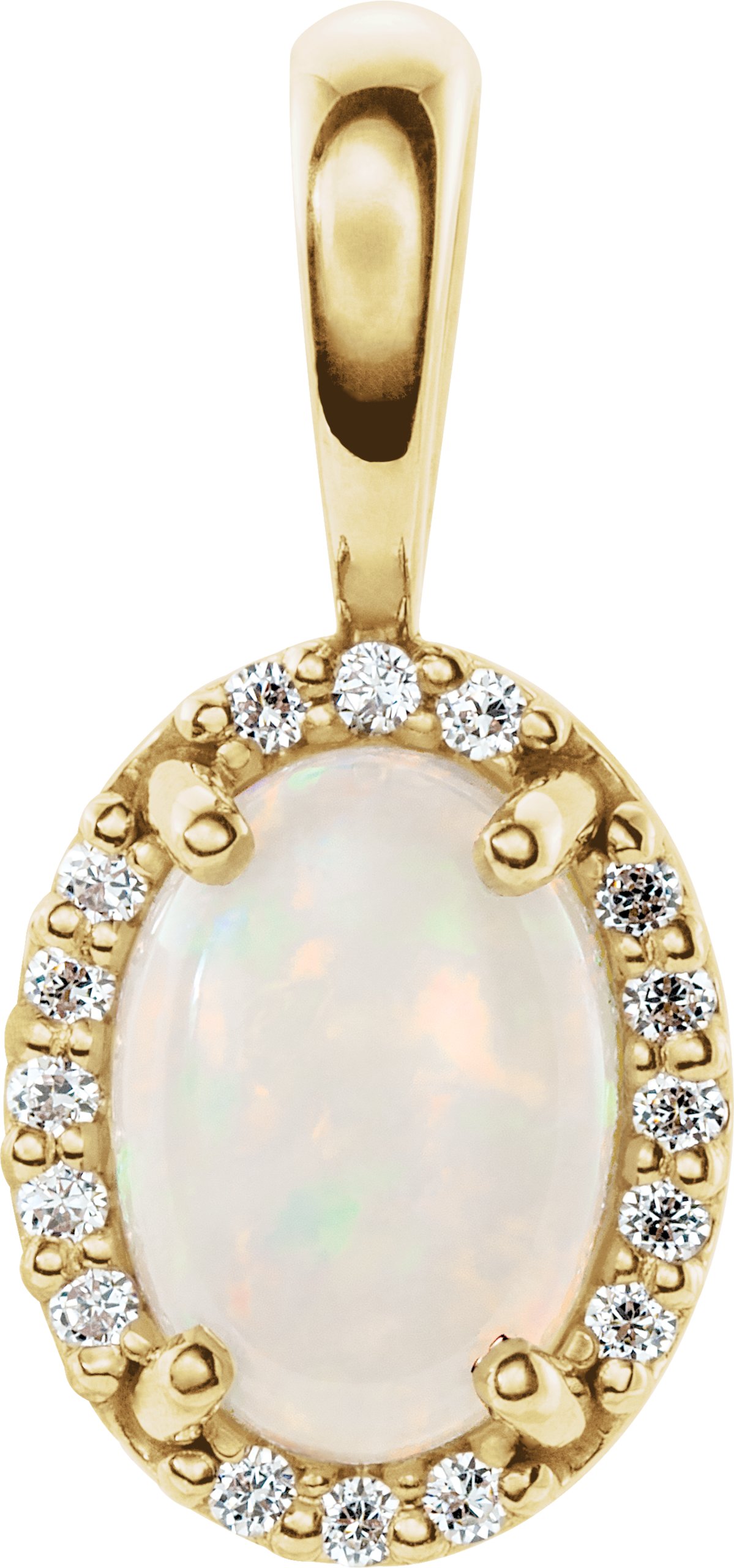 29838 / Pendant / Set / 14K Yellow / Oval / Natural White Opal / 6 X 4Mm :: 0.04 Ctw / Natural Diamond / I1, G-H / Polished / Natural Opal And .04 Ctw Natural Diamond Halo-Style Pendant