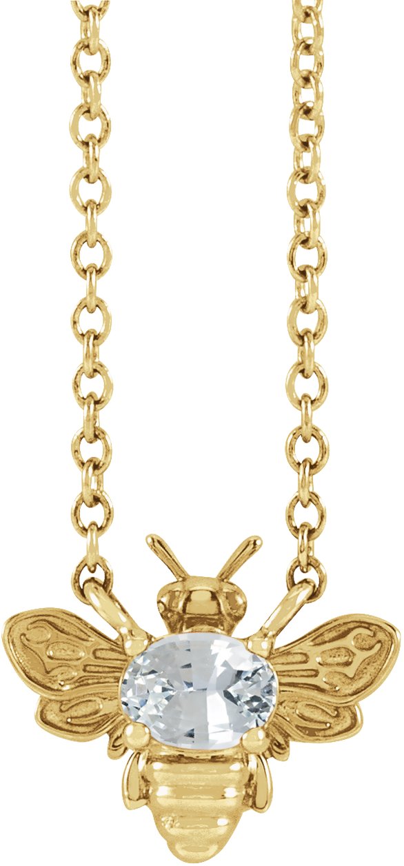 87498 / Necklace / Set / 14K Yellow / Oval / Natural White Sapphire / 4 X 3 Mm / 18 In / Polished / Natural White Sapphire Bee Necklace