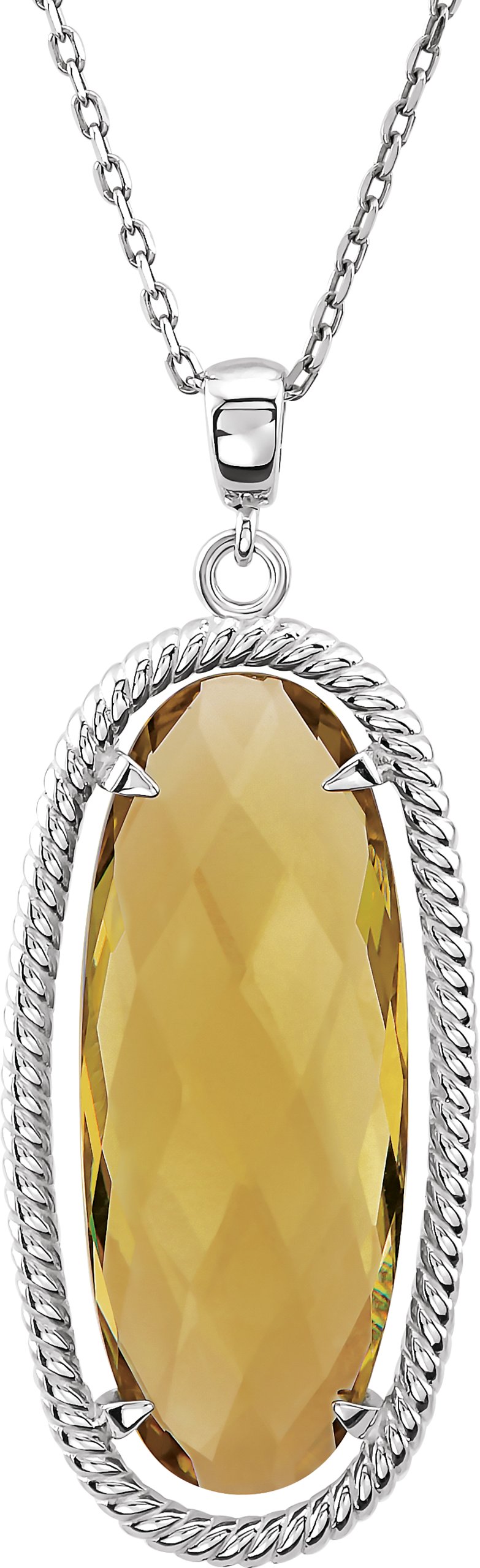 Sterling Silver 25x10 mm Oval Honey Quartz Rope 18" Necklace
