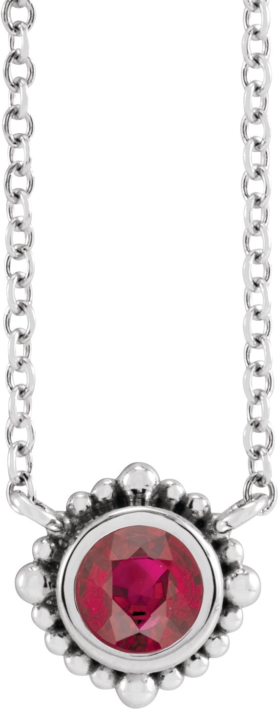 Sterling Silver 3 mm Natural Ruby Beaded Bezel-Set 18" Necklace