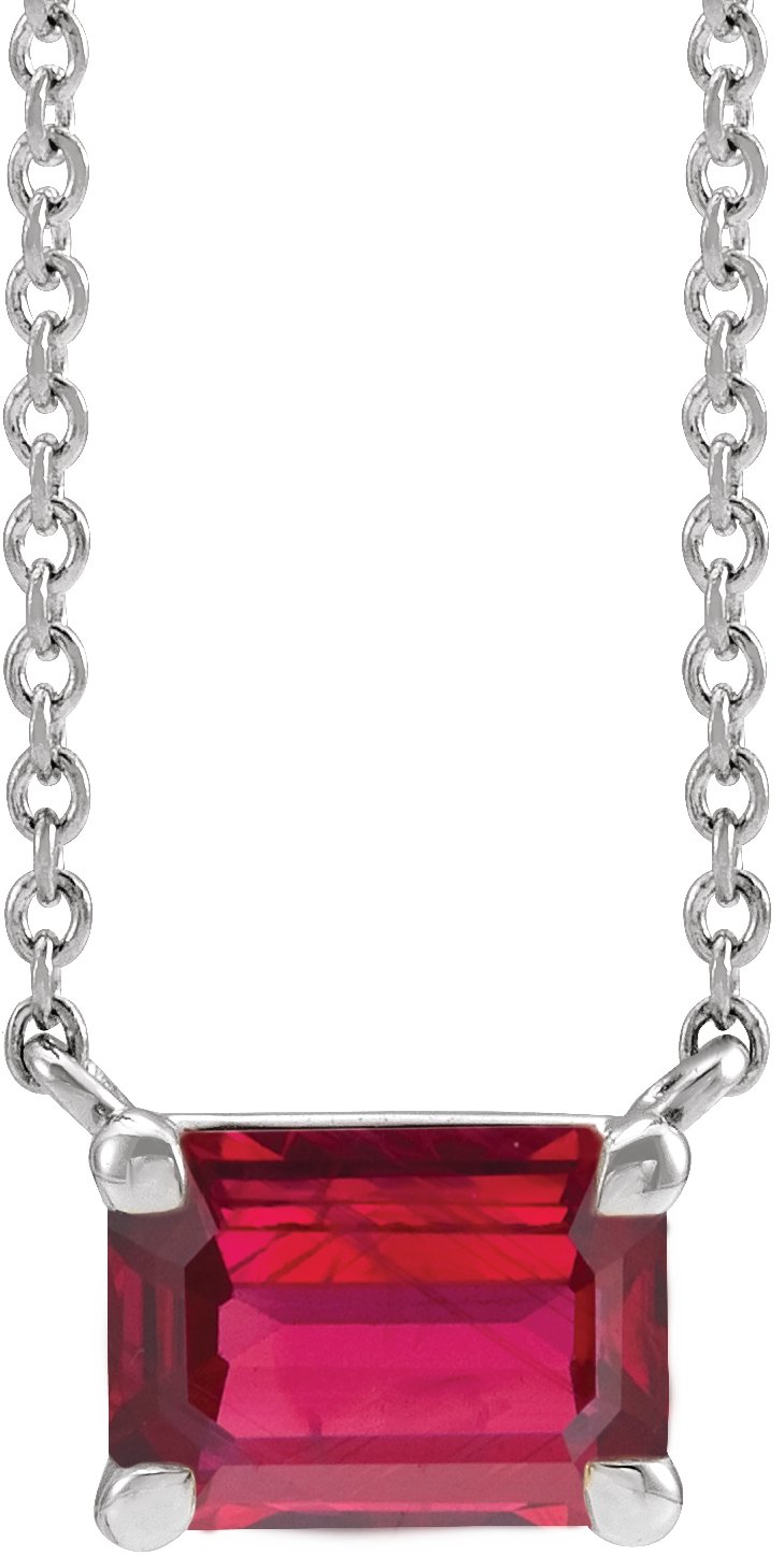 87178 / Necklace / Set / Sterling Silver / Emerald / Lab-Grown Ruby / 5 X 3 Mm / 18 In / Polished / Lab-Grown Ruby Claw-Prong Necklace