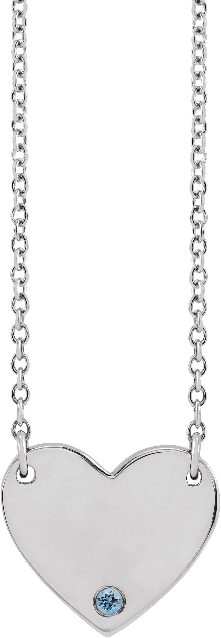 87582 / Necklace / Set / Sterling Silver / Round / Natural Aquamarine / 1.5 Mm / 18 In / Polished / Aquamarine Engravable Heart Necklace