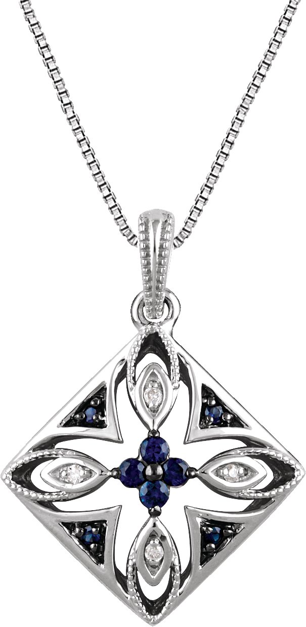 Sterling Silver Natural Blue Sapphire & .025 CTW Natural Diamond 18" Necklace