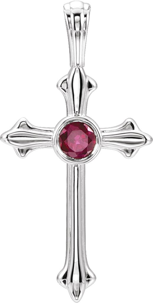 R42343 / Pendant / Set / Sterling Silver / Round / Natural Ruby / 3 Mm / Polished / Natural Ruby Cross Pendant