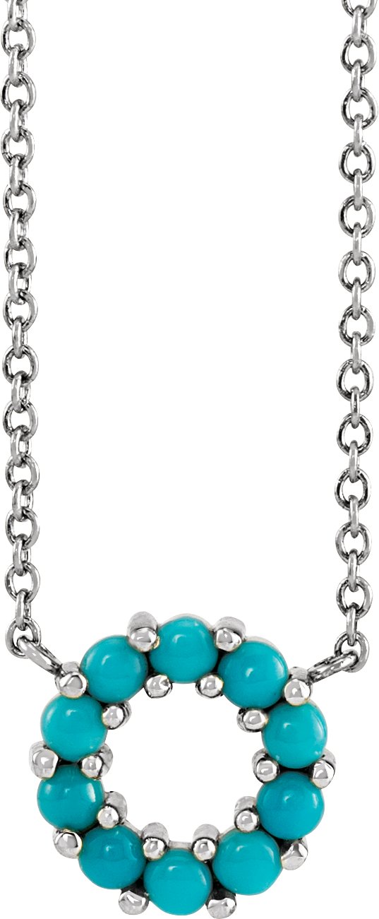 88076 / Necklace / Sterling Silver / Set / Natural Turquoise / Round / 2 Mm / 10.5 X 9.5 Mm / Polished / Natural Turqoise Cabochon 18 In Necklace