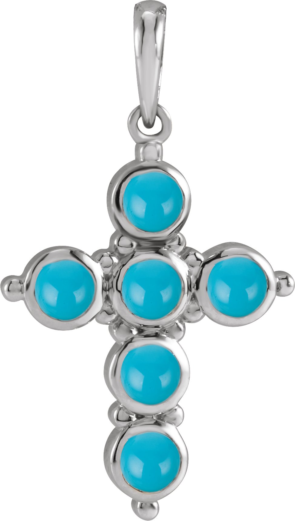 R42394 / Pendant / Set / Sterling Silver / Round / Natural Turquoise / 3 Mm / Polished / Natural Turquoise Cabochon Cross Pendant