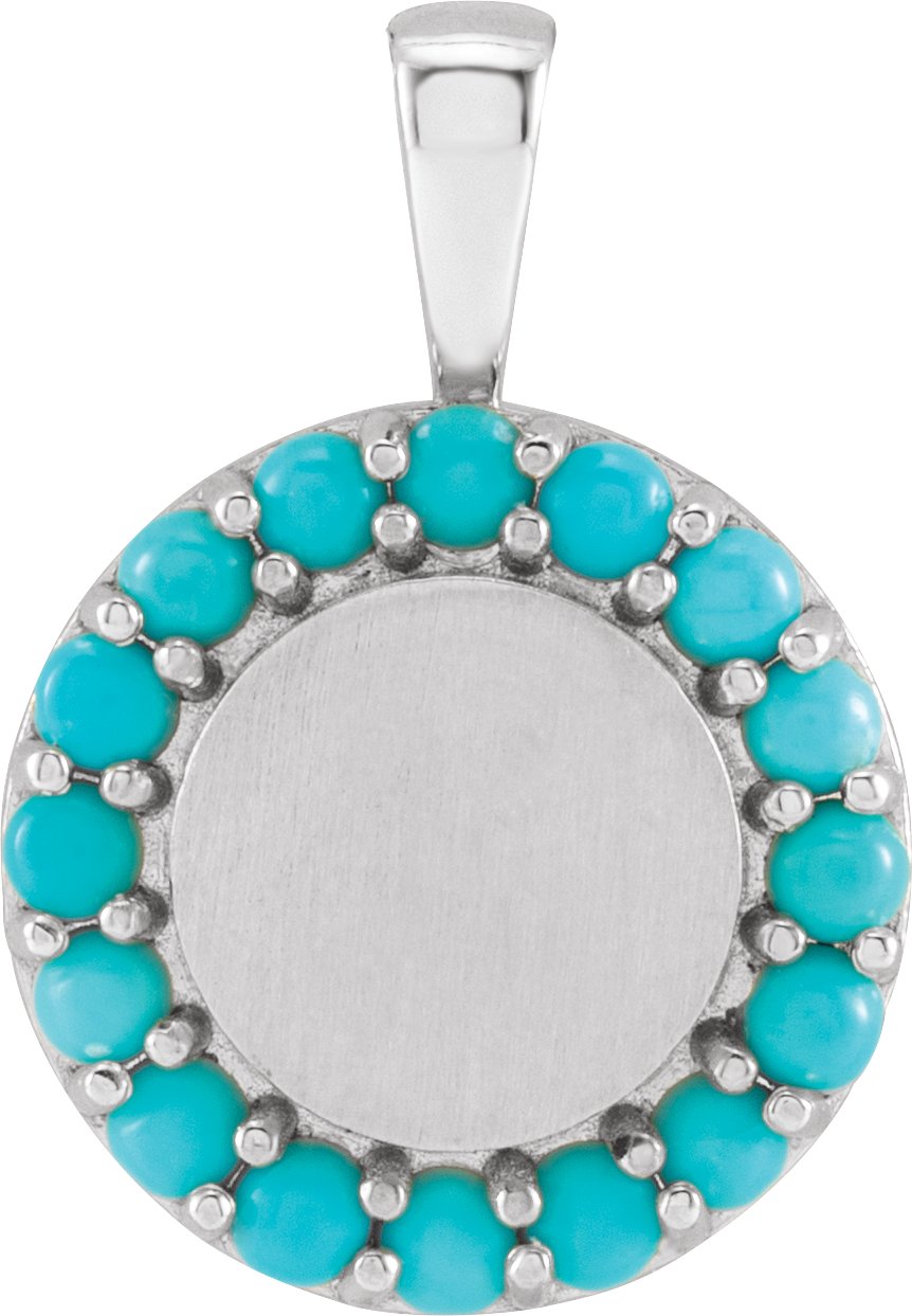 87782 / Pendant / Set / Sterling Silver / Round / Natural Turquoise / 2 Mm / Polished / Natural Turquoise Engravable Halo-Style Pendant