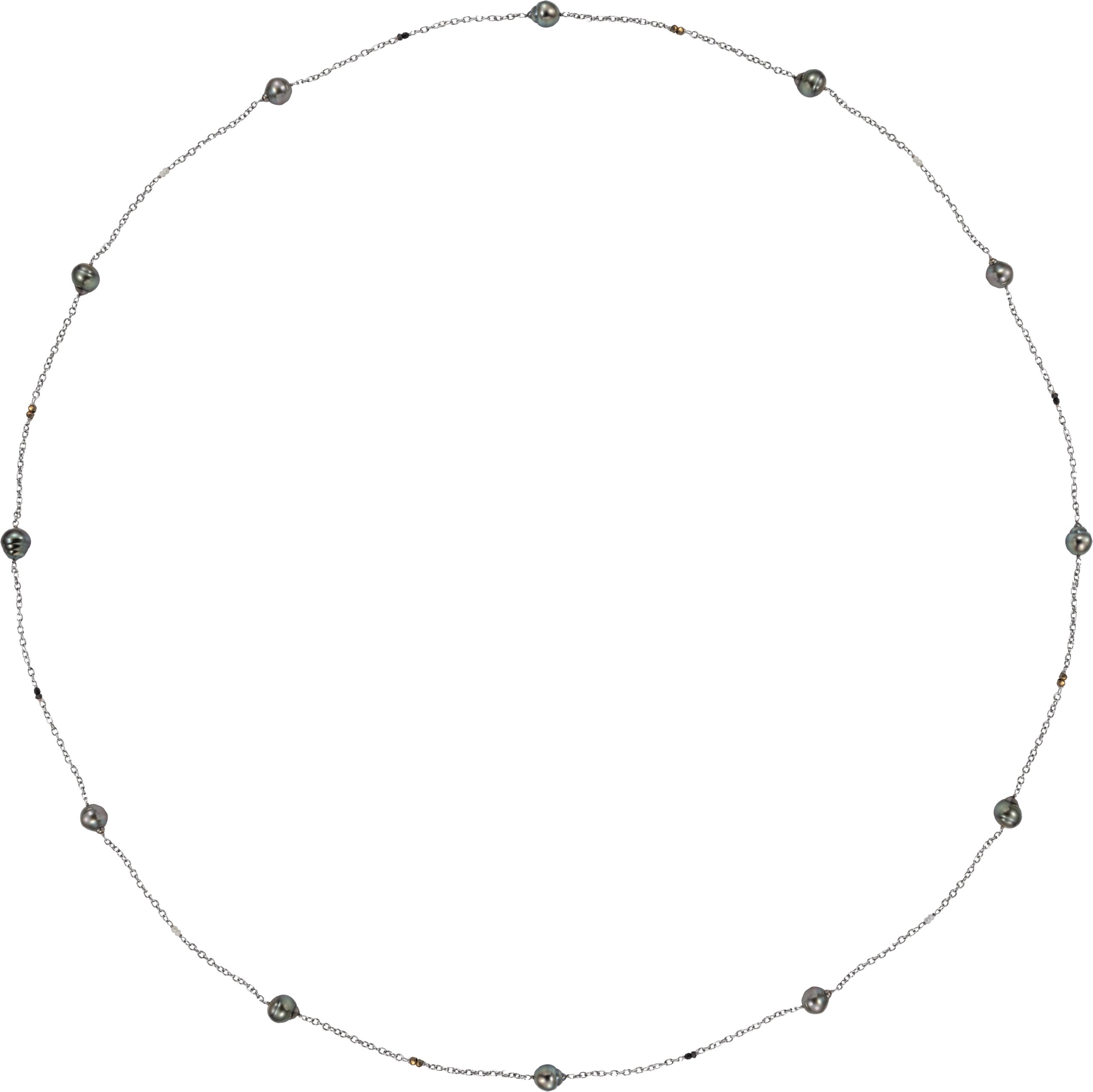 Sterling Silver Tahitian Cultured Pearl & Black Spinel 48" Necklace