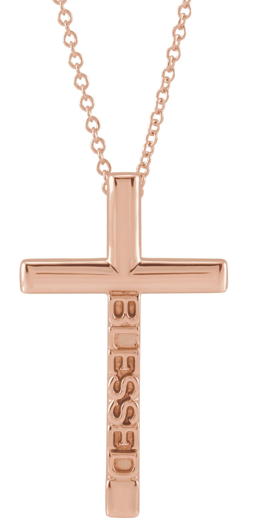 R45409 / Necklace / 14K Rose / 25 X 15.05 Mm / 16-18 In / Polished / Blessed Cross Necklace