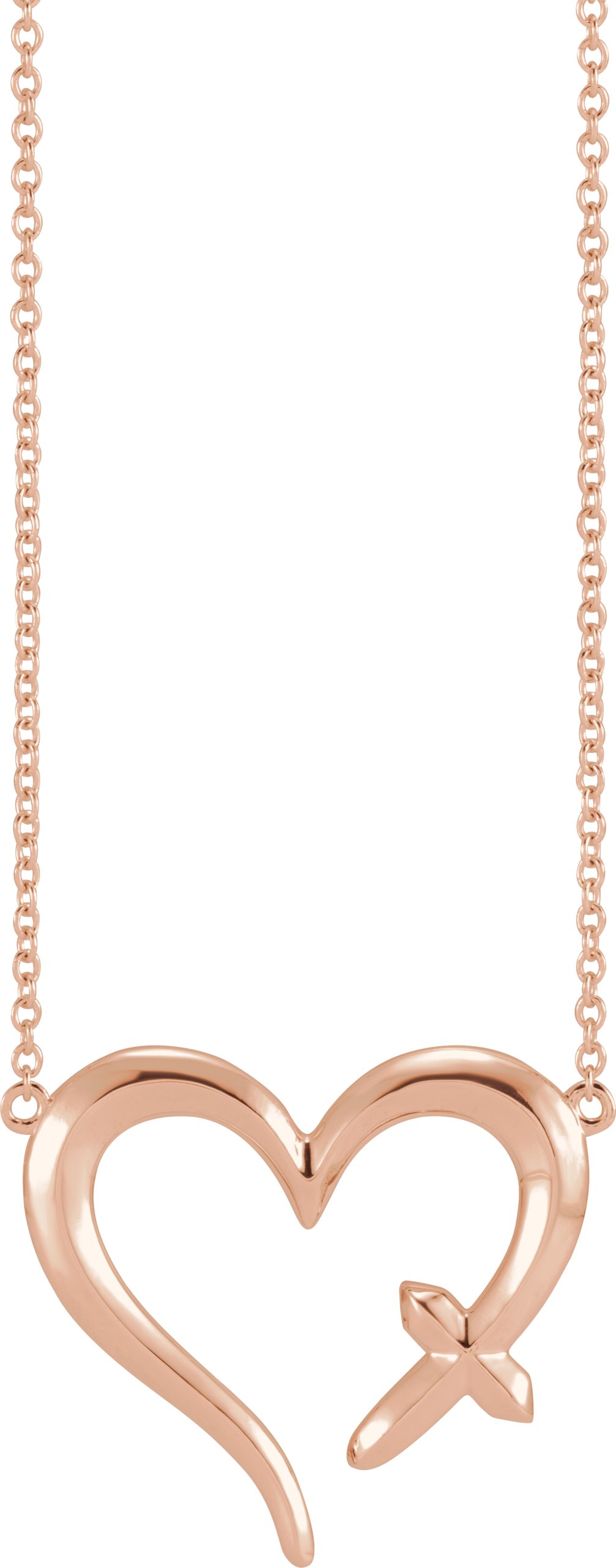 87469 / Necklace / 14K Rose / 22 X 18.47 Mm / 18 In / Polished / Knife-Edge Open Heart With Cross Necklace