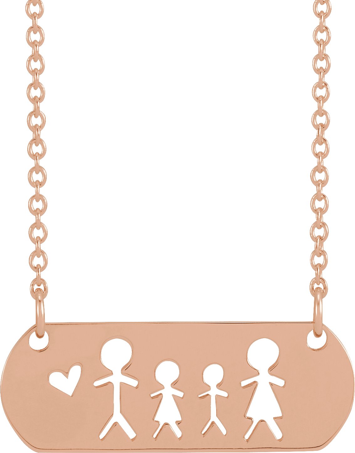 87477 / Necklace / 14K Rose / Father-Daughter-Son-Mother / 21.5 X 8 Mm / 18 In / Polished / Stick Figure Family Necklace
