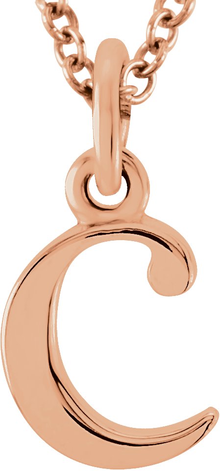 85780 / Necklace / 14K Rose / Initial C / 12 X 4.5 Mm / 16 In / Polished / Lowercase Initial Necklace