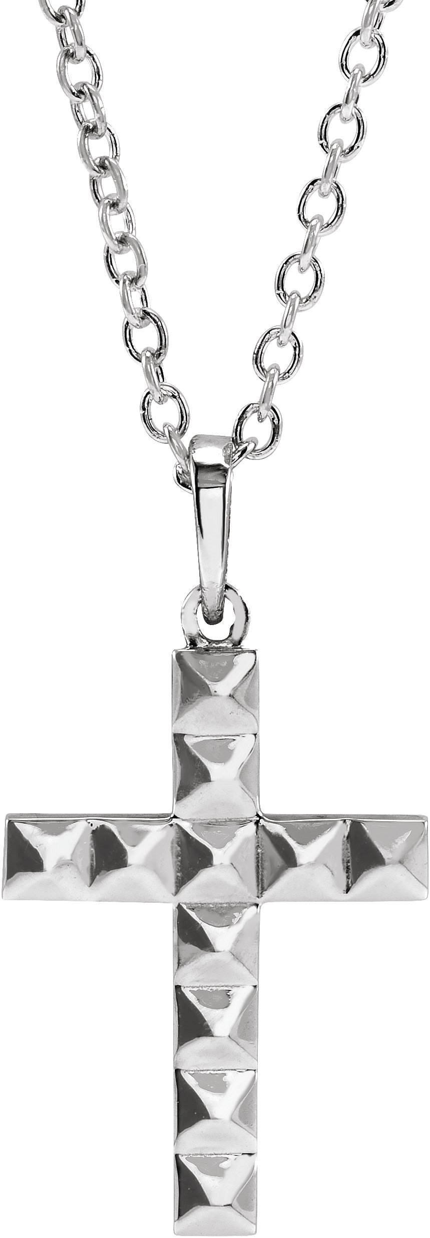 R42413 / Necklace / 14K White / 27.22 X 14.29 Mm / 20 In / Polished / Pyramid Inspired Cross Necklace