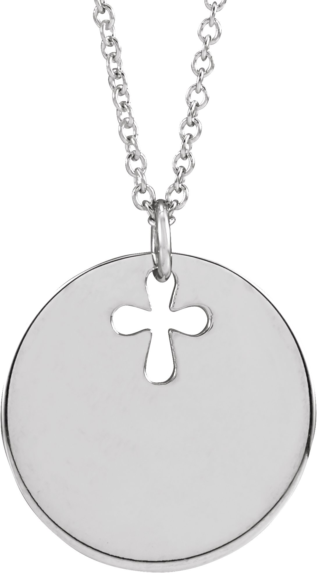 14K White Engravable Pierced Cross Disc 16-18" Necklace