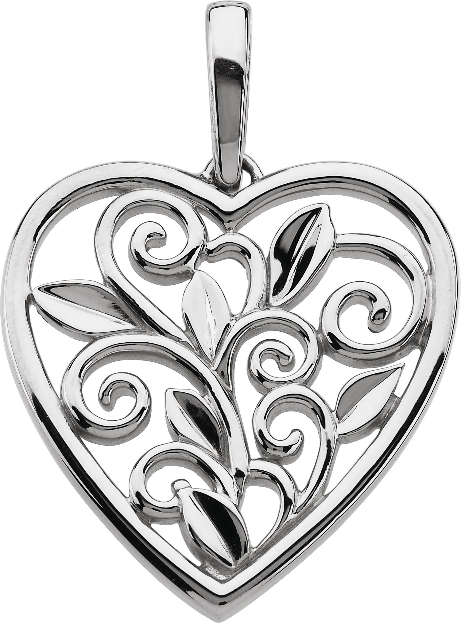 83652 / Pendant / 14K White / 30 X 27 Mm / Polished / Scroll And Leaf Inspired Heart Pendant
