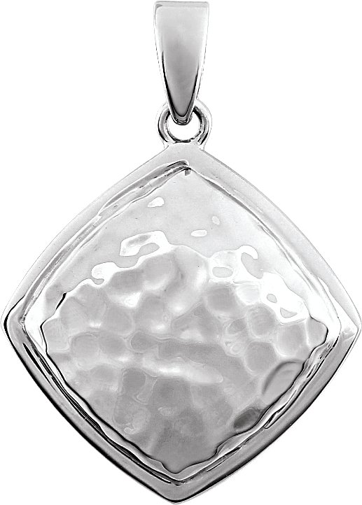 86108 / 14K White / 24.40X16.80 Mm / Hammered Square Pendant
