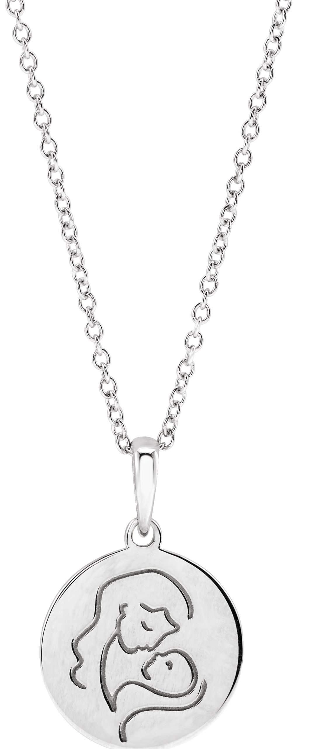87728 / Necklace / 14K White / 18.91 X 12 Mm / 16-18 In / Polished / Mother And Child Engraved Necklace