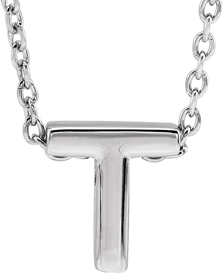 653624 / Necklace / 14K White / Initial T / 8 X 7.2 Mm / 16-18 In / Polished / Initial Pendant Slide Necklace
