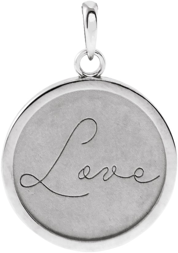 14K White Love Engraved 18 mm Disc Pendant