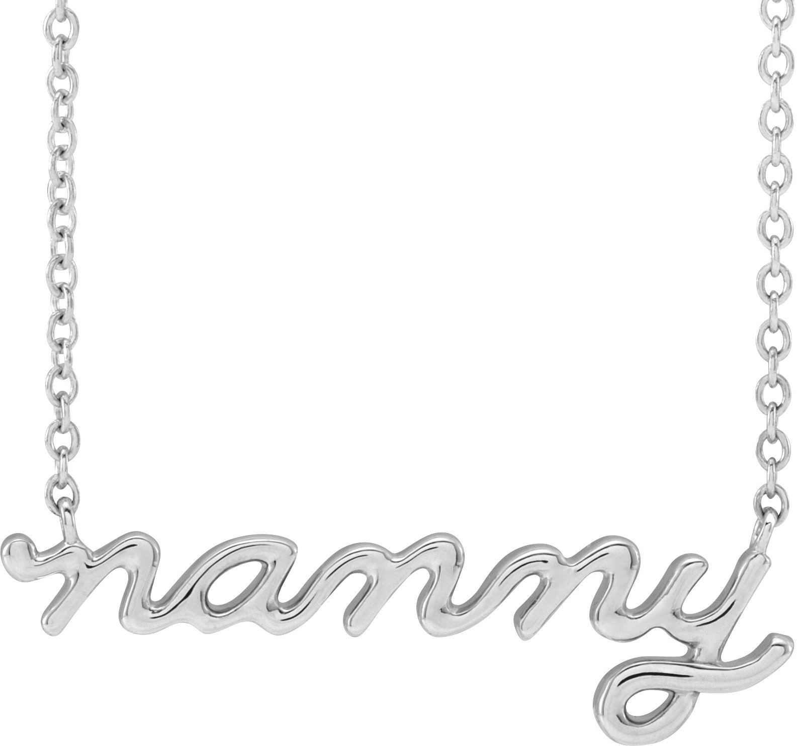88062 / Necklace / 14K White / 24.11 X 7.63 Mm / 18 In / Polished / Lowercase Script Nanny Necklace