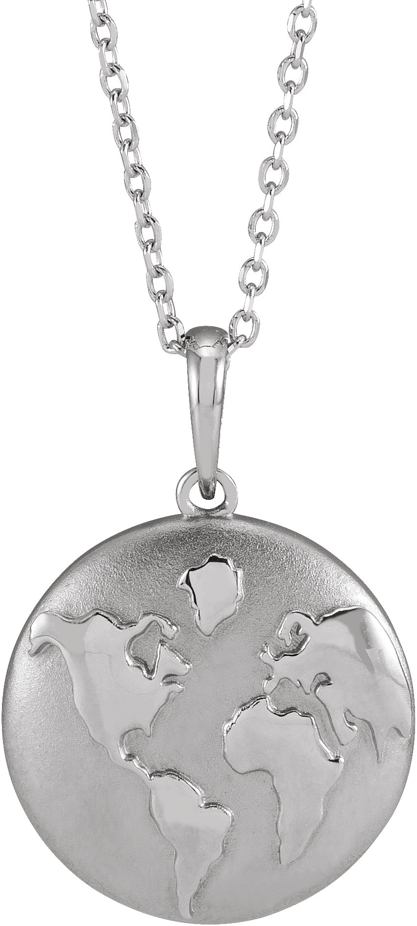 87532 / Necklace / 14K White / 21.96 X 14.76 Mm / 16-18 In / Polished / Domed Old World Globe Necklace