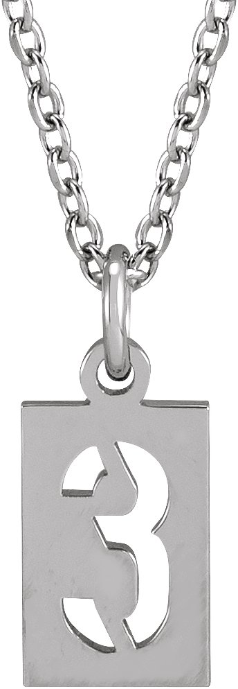 87483 / 14K White / 3 / Necklace / 12.41 X 5.32 Mm / 16-18 In / Polished / Pierced Dog Tag Number Necklace