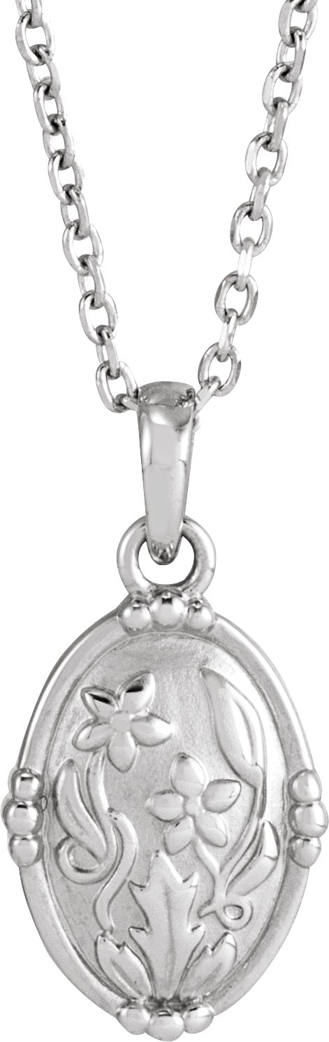 88428 / Necklace / 14K White / 18.36 X 8.16 Mm / 16-18 In / Polished / Vintage-Inspired Floral Necklace
