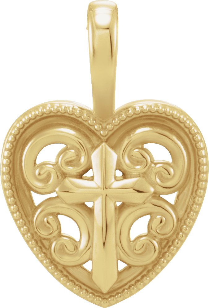 R50029 / Pendant / 14K Yellow / 18.74 X 12.68 Mm / Polished / Ornate Heart And Cross Pendant