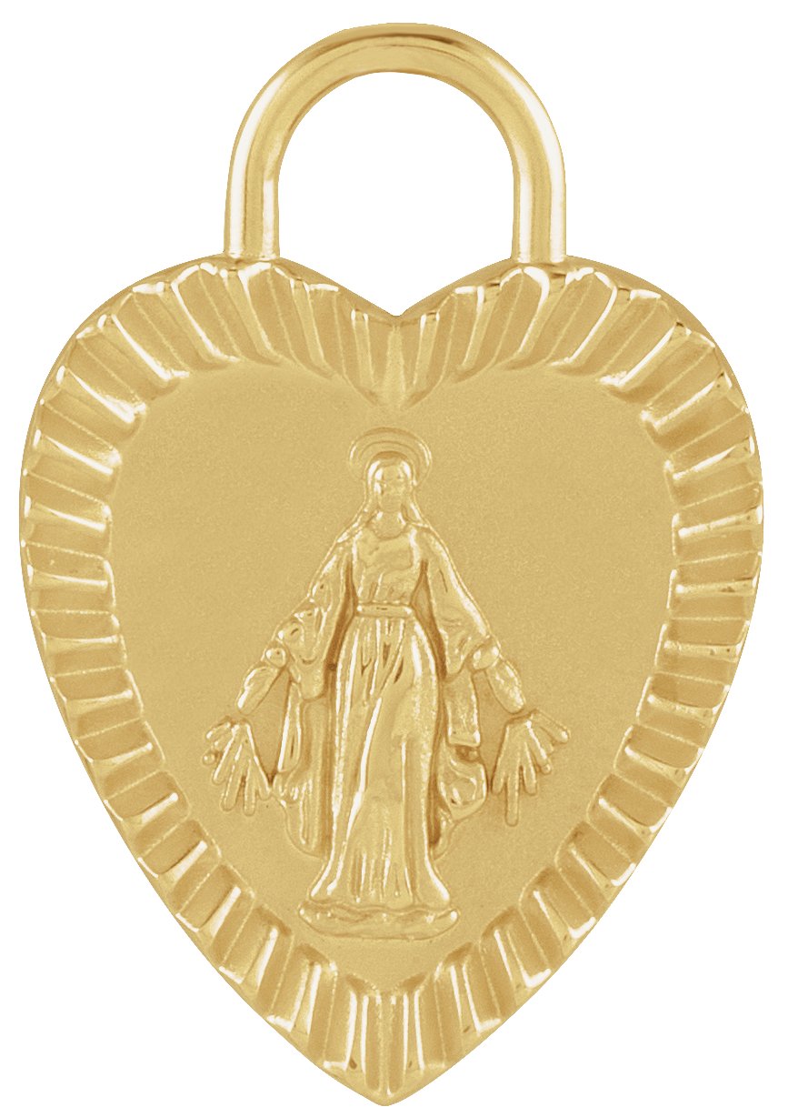 R50013 / Pendant / 14K Yellow / 20.08 X 13.9 Mm / Polished / Miraculous Mary Heart-Shaped Pendant