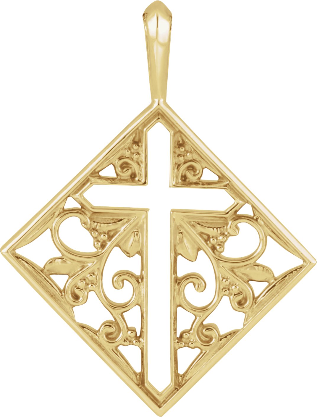 R42397 / Pendant / 14K Yellow / 23.39 X 18 Mm / Polished / Ornate Pierced Cross Pendant