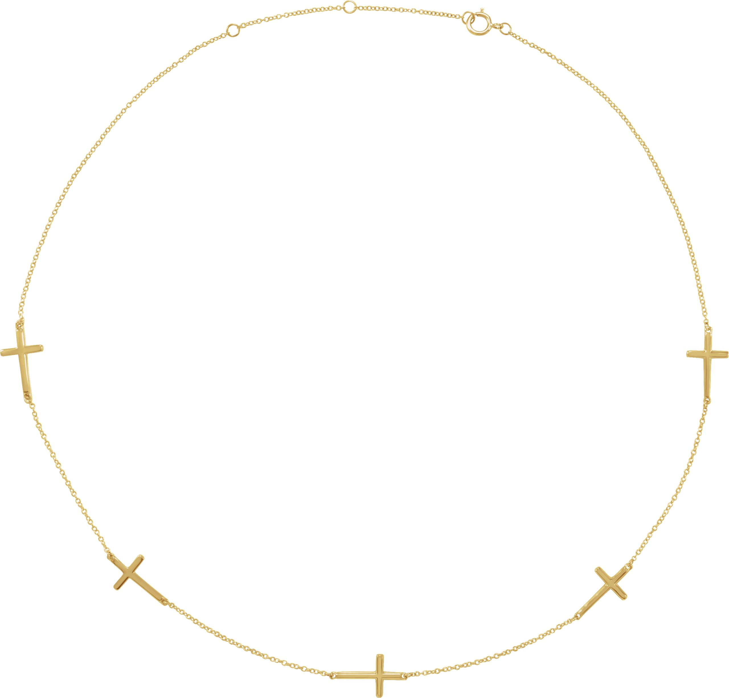 653454 / 14K Yellow / 5-Station / 16-18 In / Polished / 5-Station Cross 18 Inch Necklace