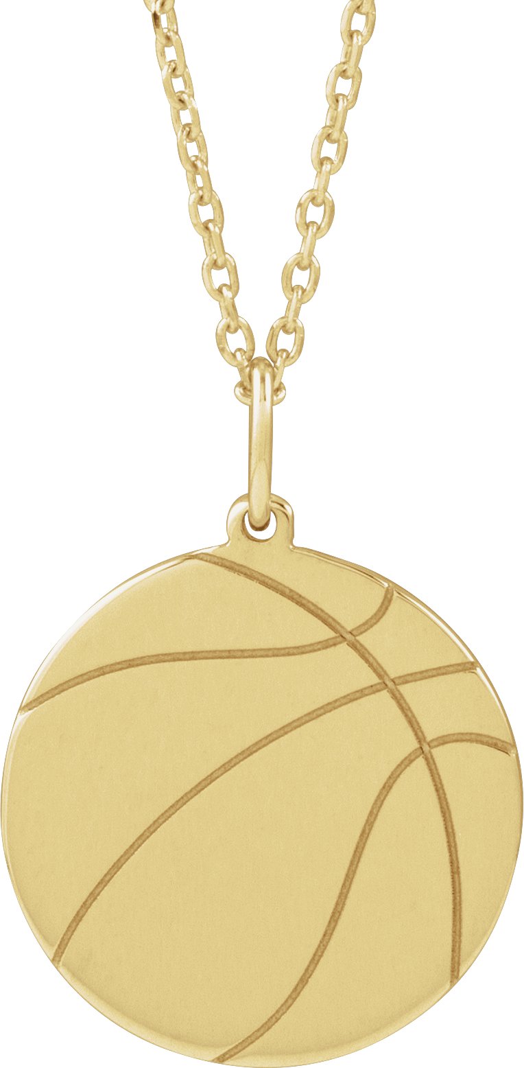 88793 / Necklace / 14K Yellow / Basketball / 15 X 10.5 Mm / 16-18 In / Polished / Engravable Basketball Necklace