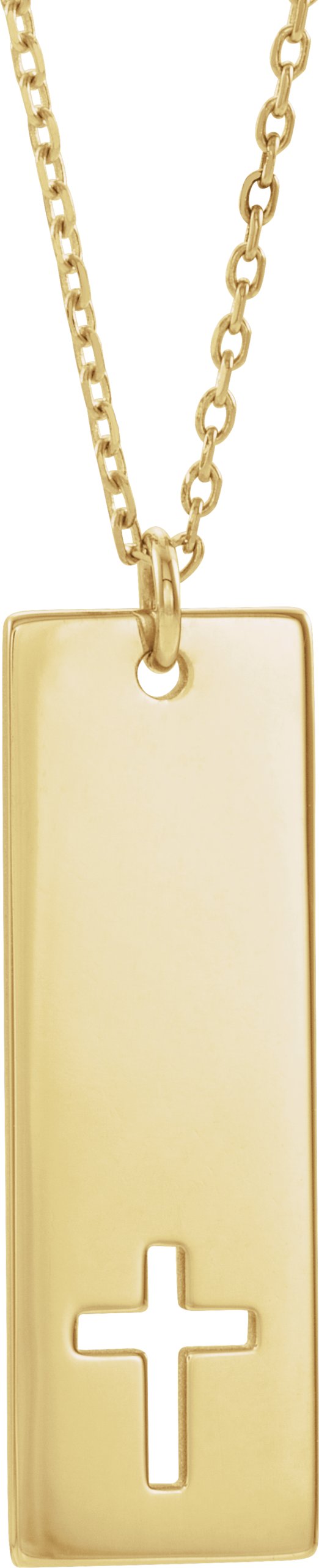 14K Yellow Engravable Pierced Cross Bar 16-18" Necklace