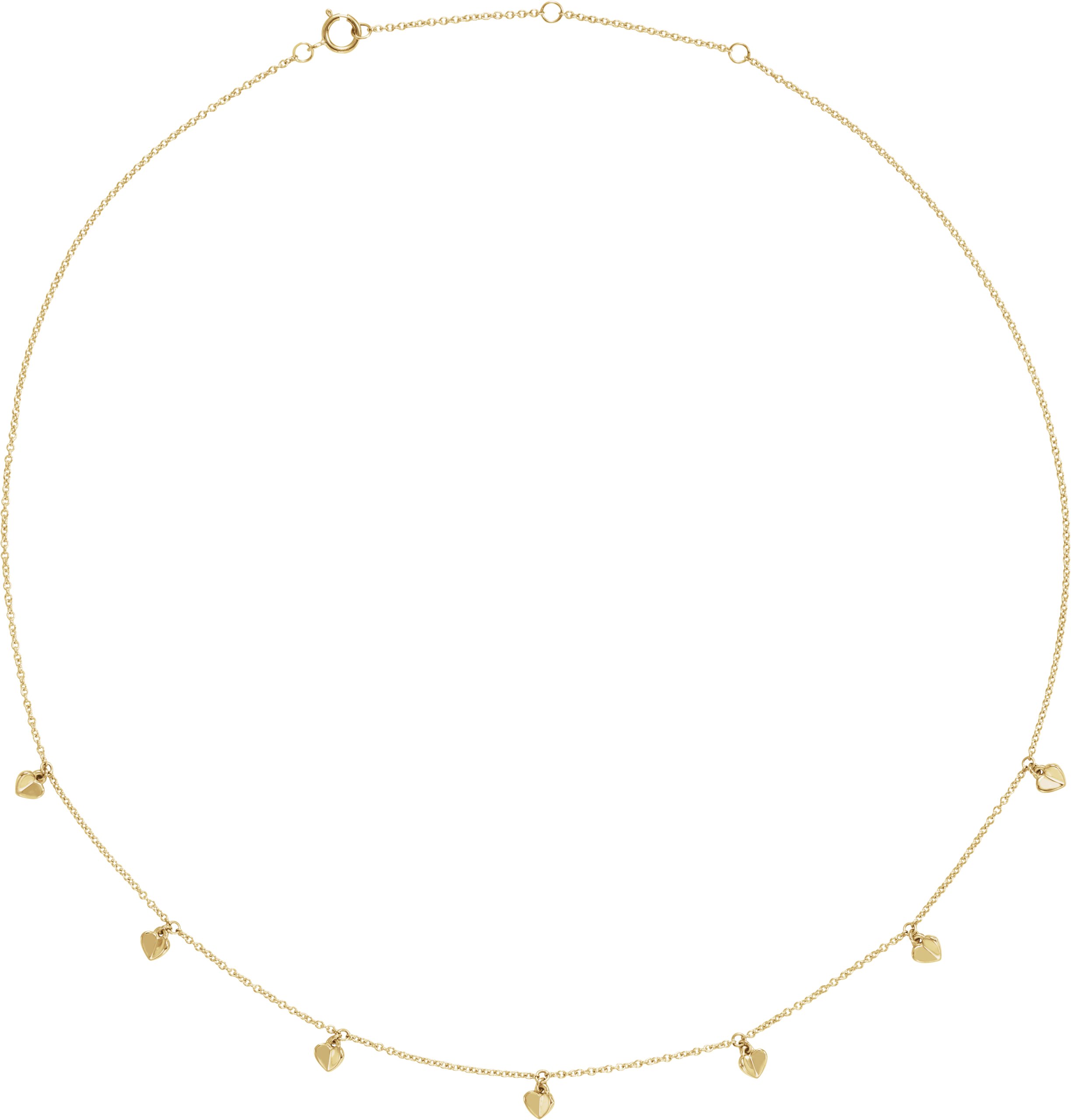 653619 / Necklace / 14K Yellow / 16-18 In / Polished / Heart Dangle Station Necklace