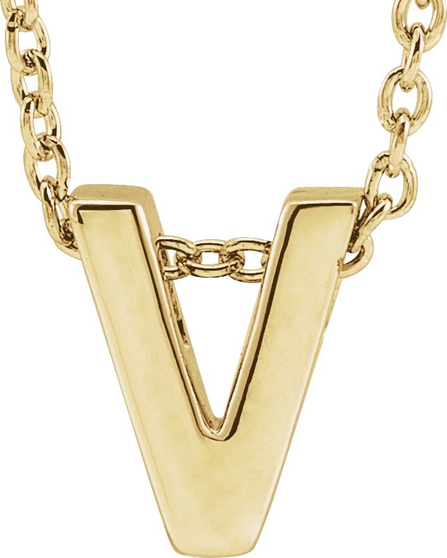 653624 / Necklace / 14K Yellow / V / 8 X 7 Mm / 16-18 In / Polished / Initial Pendant Slide Necklace