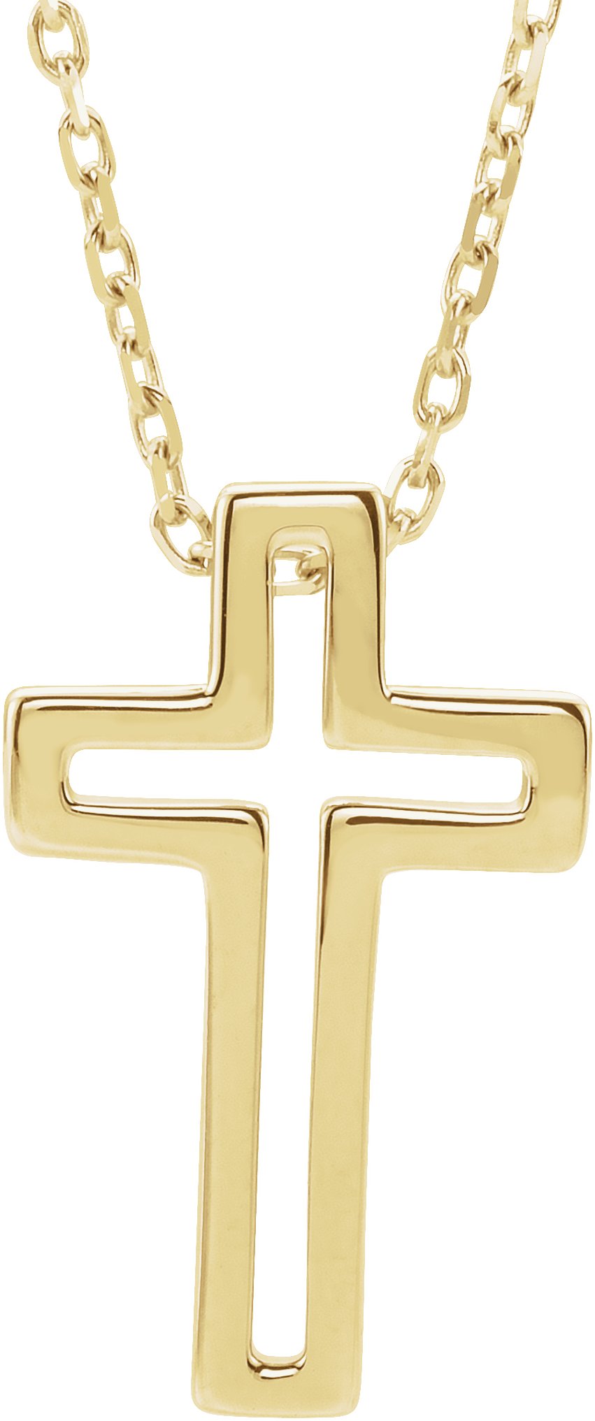 R42353 / Necklace / 14K Yellow / 15.7 X 9.9 Mm / 16-18 In / Polished / Open Cross Necklace
