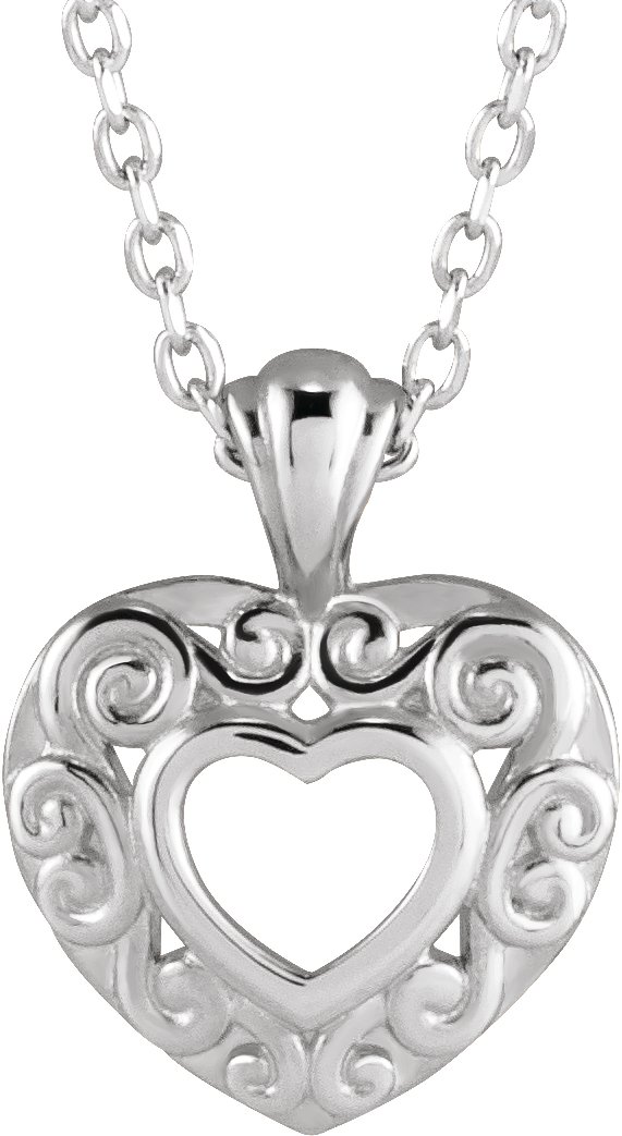 88206 / Necklace / Sterling Silver / 12.93 X 10.11 Mm / 16-18 In / Polished / Filigree Pierced Heart Necklace