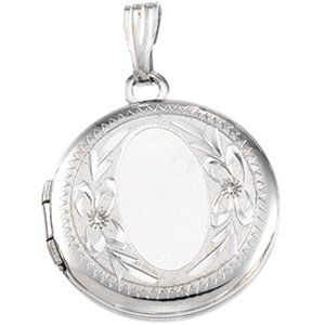 Sterling Silver 23.4x16.2 mm Design-Engraved Oval Shaped Locket