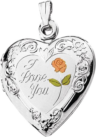 Sterling Silver 27.5x19.25 mm Enameled Roses "I Love You" Heart Locket