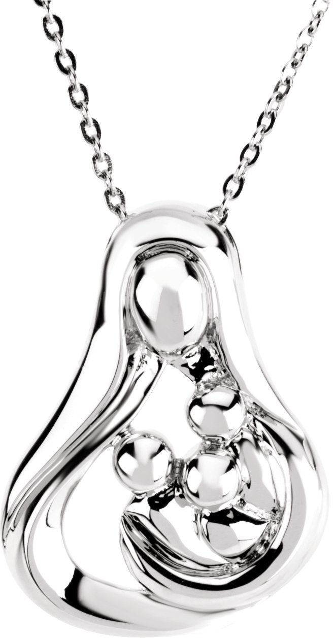 R45218 / Necklace / Sterling Silver / 3 Children / 25 X 19 Mm / 18 In / Polished / Mothers Embrace Necklace With Packaging