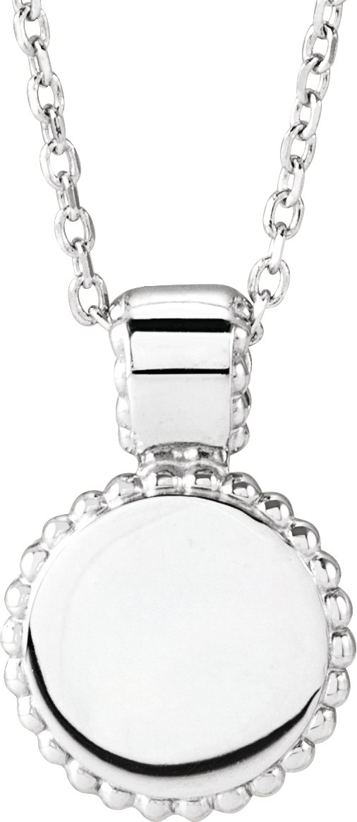 Sterling Silver Engravable Beaded Disc 16-18" Necklace