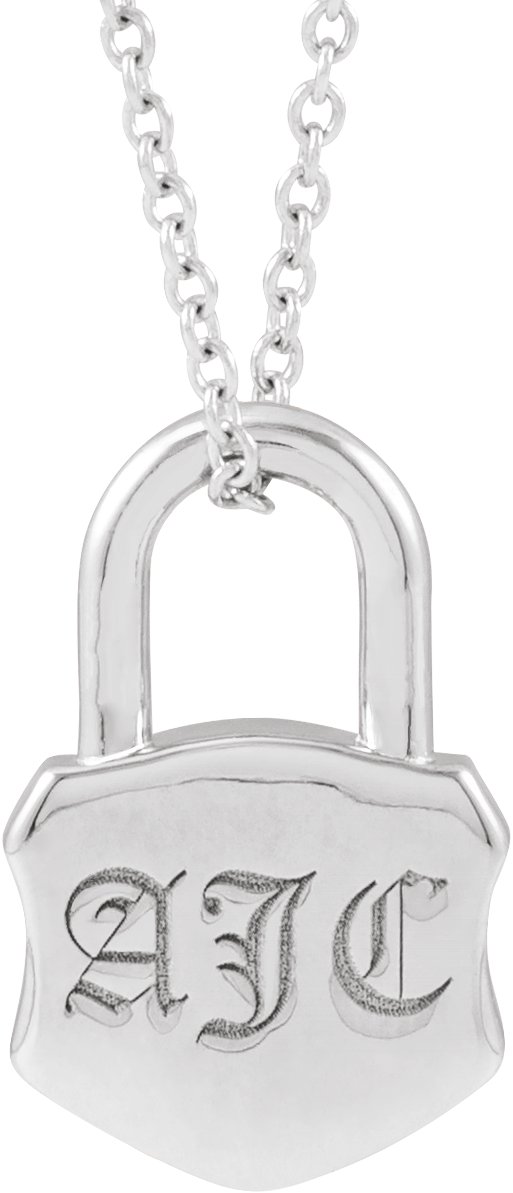 88239 / Necklace / Sterling Silver / 15.29 X 10.05 Mm / 16-18 In / Polished / Engravable Lock Necklace